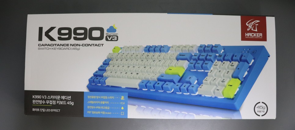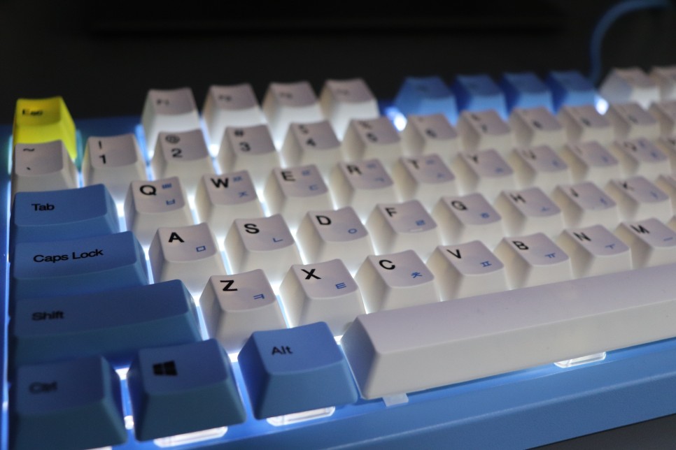 그 와중에 시선을 사로잡는 하늘색 키보드가 보여서